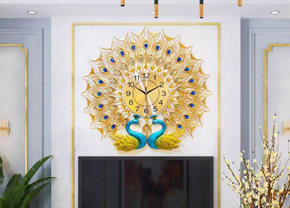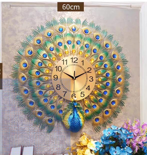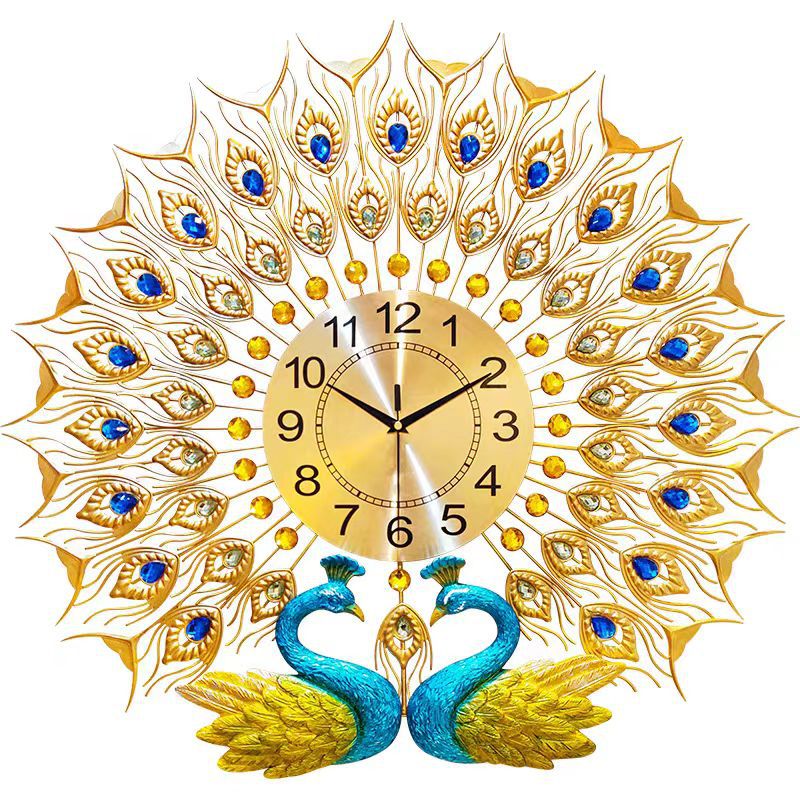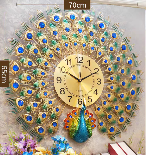 Three-Dimensional Peacock : The Wall Clock is use of carving craftsmanship makes the peacock more three-dimensional and vivid to show every details; pure handmade gold, more luxurious and beautiful