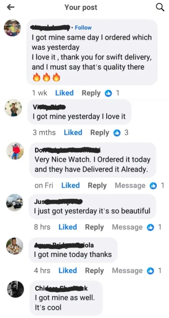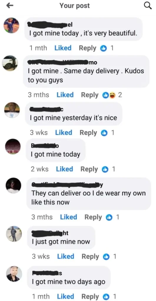 We offer payment on delivery service. This means you have nothing to lose or fear because you can actually confirm the quality of the product yourself before paying for it.